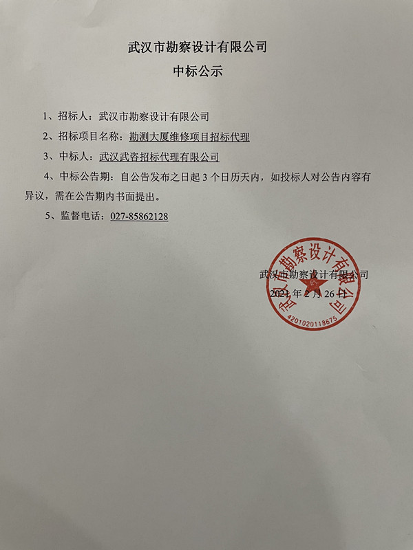 勘測大廈維修項目招標代理中標公示