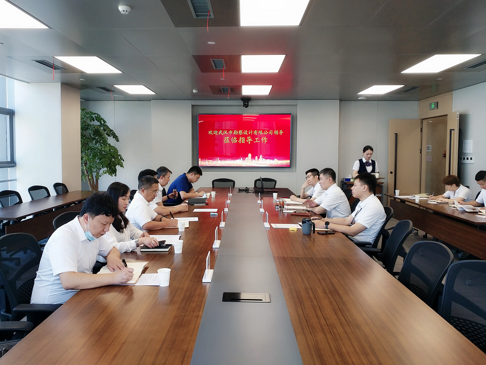 在聽取勘察公司情況介紹后,黃磊對公司一直以來提供的技術(shù)支撐及優(yōu)質(zhì)服務(wù)表示感謝。他提到,勘察公司是行業(yè)佼佼者,擁有強(qiáng)大的技術(shù)實(shí)力和人才優(yōu)勢,具備優(yōu)良的市場意識和服務(wù)品質(zhì),參與了眾多重大項(xiàng)目的勘察設(shè)計(jì)等技術(shù)服務(wù)工作,有著良好的業(yè)界口碑。他希望,勘察公司能依托自身優(yōu)勢,積極參與武漢市城市更新相關(guān)工作,共同為集團(tuán)發(fā)展和武漢城市建設(shè)出謀劃策、做出貢獻(xiàn)。