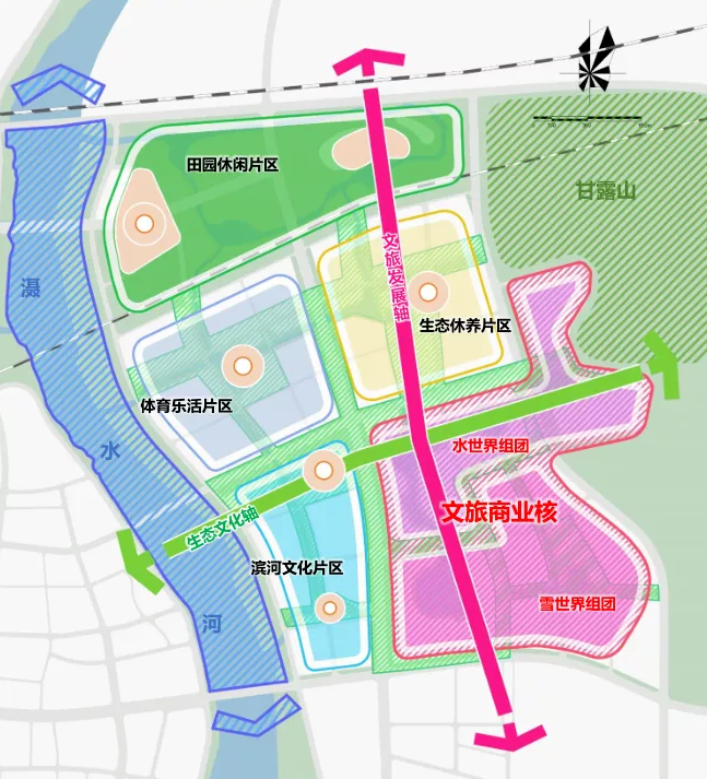 項(xiàng)目規(guī)劃用地約1.1萬畝,打造“一核兩軸四片區(qū)”的空間格局:項(xiàng)目“一核”圍繞湖面,布局多元文旅業(yè)態(tài),其中包括約9萬方的全球最大冰雪娛樂綜合體,約2萬方的水娛樂綜合體,約30萬方的酒店康養(yǎng)民宿群以及集萃黃陂人文的特色水鎮(zhèn)商街;“兩軸”將建設(shè)文旅發(fā)展軸和生態(tài)文化軸;“四片區(qū)”即以水系為主線,形成濱河文化、體育樂活、田園休閑、生態(tài)休養(yǎng)四大片區(qū),為游客提供全天候、全季節(jié)、全齡段、全業(yè)態(tài)的文化旅游服務(wù)。