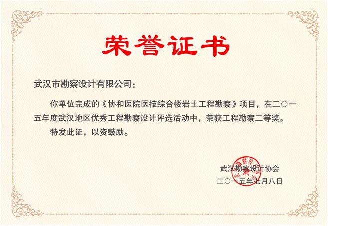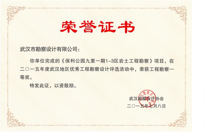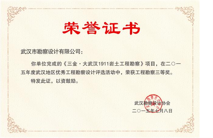 熱烈祝賀我公司在2015年度武漢市優(yōu)秀工程勘察設(shè)計(jì)獎(jiǎng)評(píng)選中,榮獲市優(yōu)秀工程勘察設(shè)計(jì)獎(jiǎng)項(xiàng)八項(xiàng)。